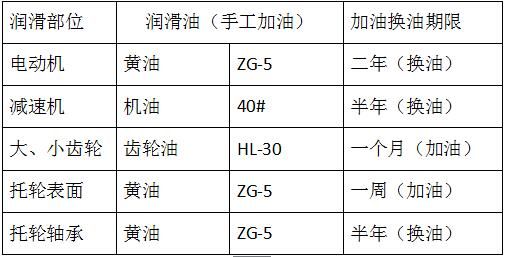 3.查抄各光滑點油質是不是潔凈,按期加油。光滑軌制見表: